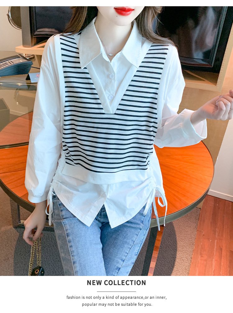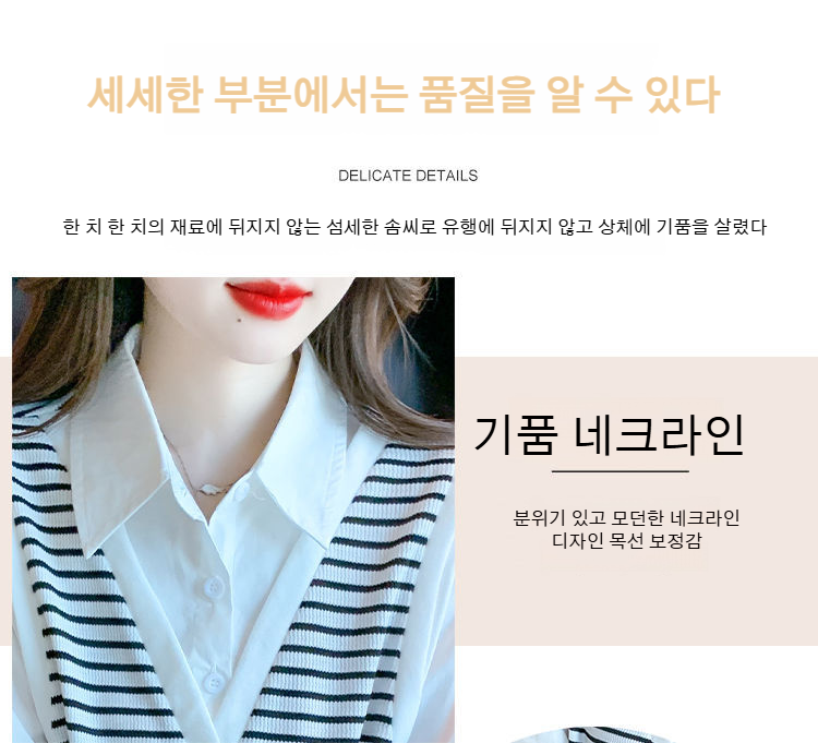 날씬해 보이는 스트라이프 셔츠 여 가을 휴가 투피스 긴팔 셔츠 예쁜 니트 쉬폰 상의 작은 셔츠 스트라이프 여 셔츠 상의