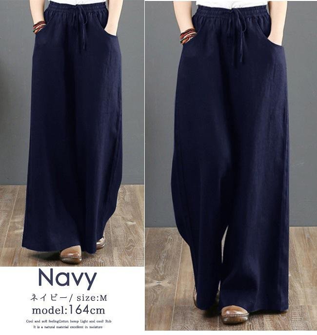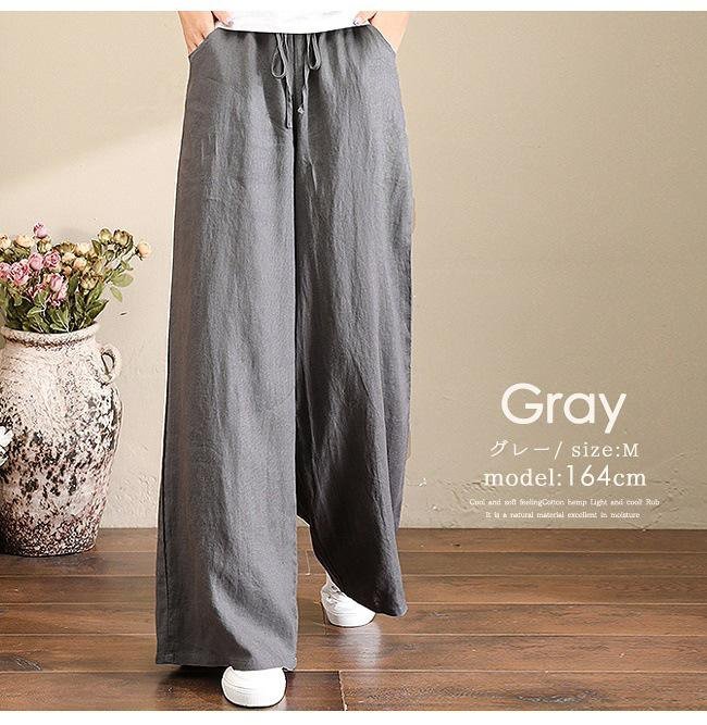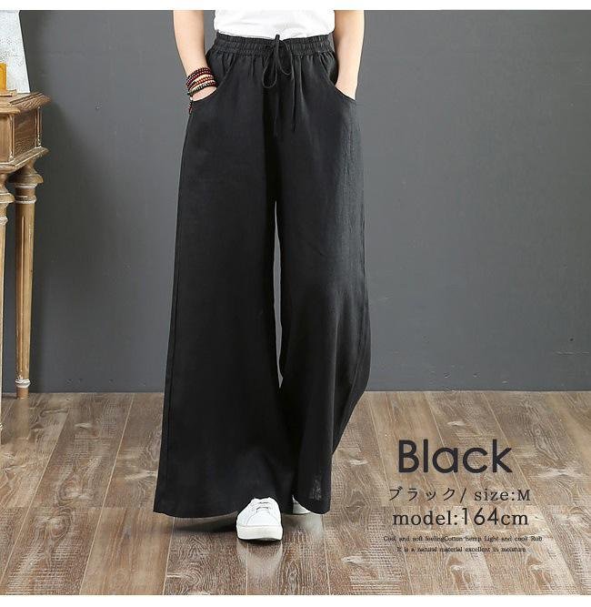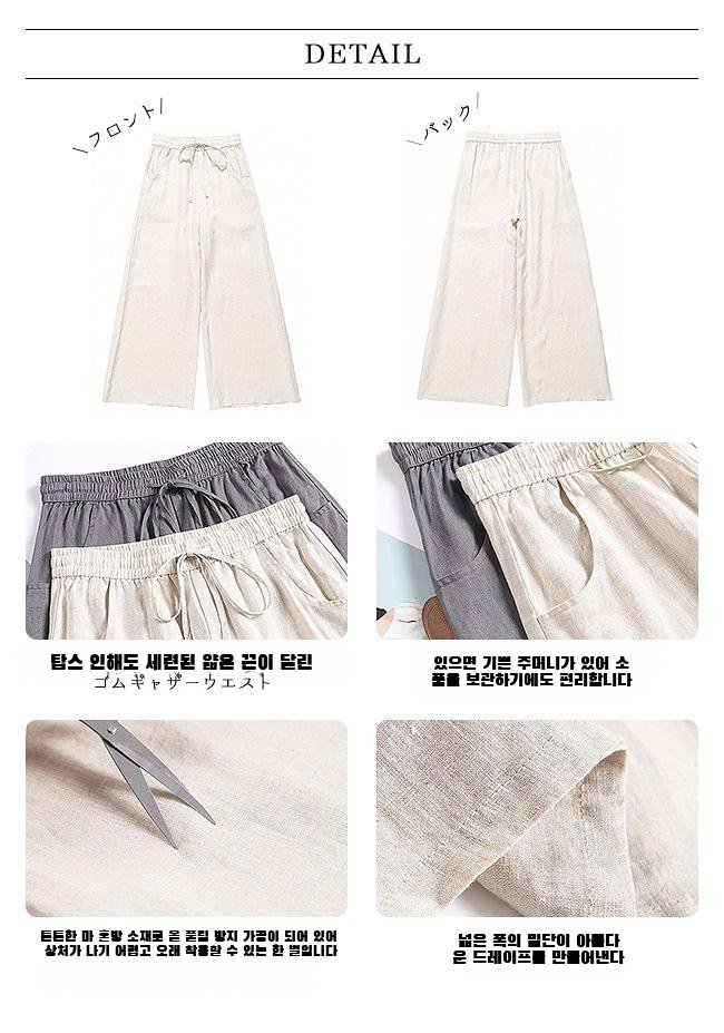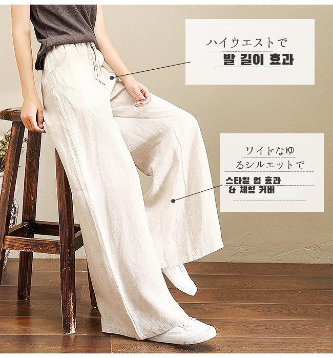 한국 봄여름 면마 와이드팬츠 전신 이미지